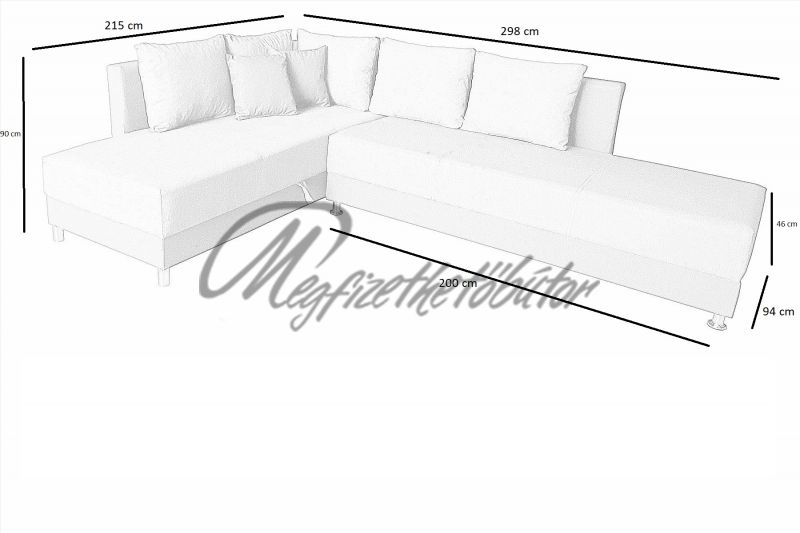 Fekvőfelület: 164 x200 cm