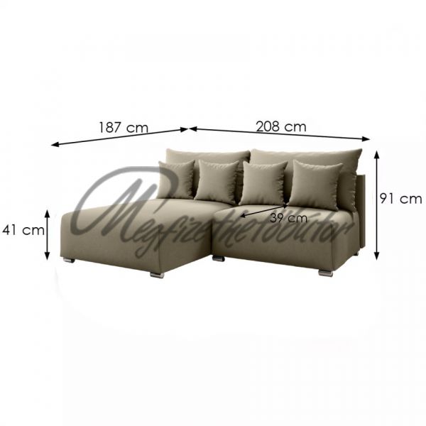 A sarokkanapé ágyazható, ágyneműtartóval van ellátva.