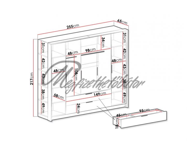 Szélesség: 255 cm
